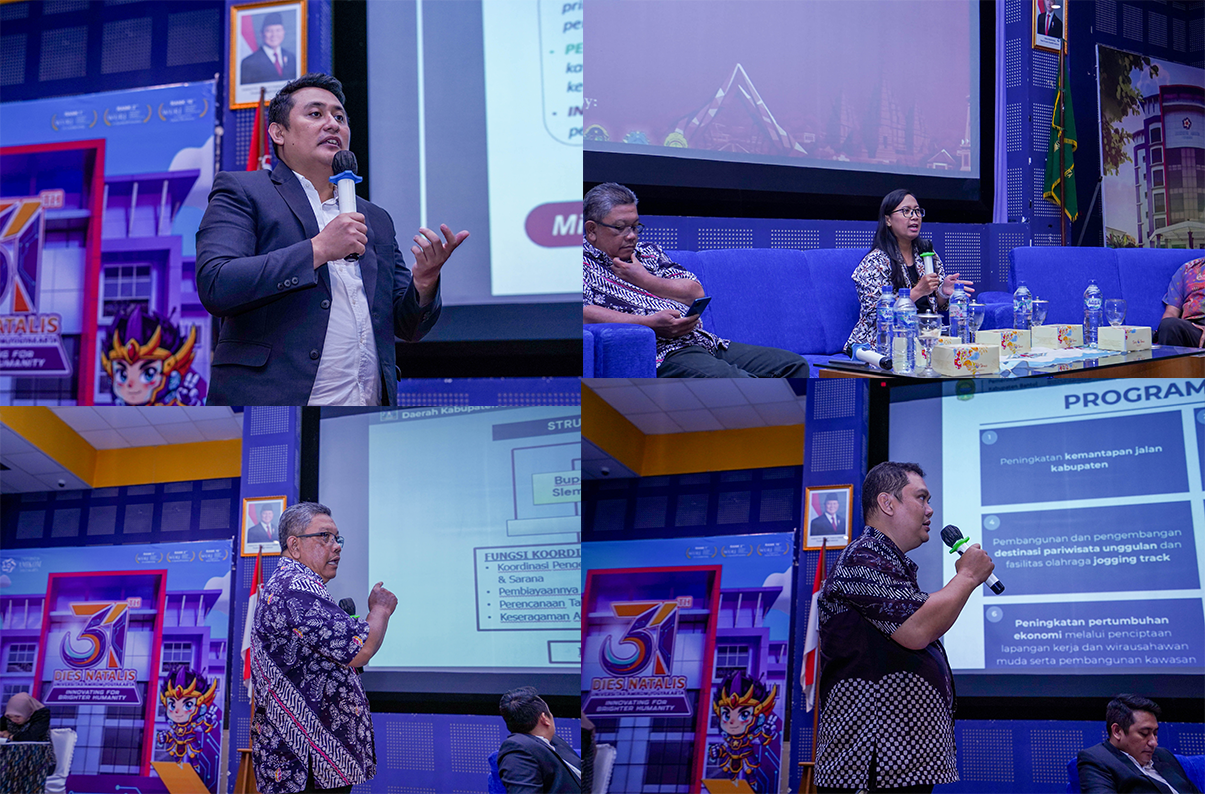 Pada sesi pagi, kegiatan diawali dengan talkshow bertema “Collaborative Urban Governance: Memperkuat Tata Kelola Berbasis Kerja Sama Antardaerah dalam Pengelolaan Kawasan Perkotaan Yogyakarta” yang berlangsung pukul 09.00–12.00 WIB. Diskusi dipandu oleh moderator Prof. Ir. Bakti Setiawan, M.A., Ph.D. dari Universitas Gadjah Mada (UGM) dan menghadirkan empat narasumber, yaitu Ibu Sinta Hermawati S.T, M.U.R.P. (Bappeda Kota Yogyakarta), Bapak Kurniawansyah Paimaon Harapan, S.T. (Bappeda Kabupaten Sleman), Bapak Ismail, S.Si, M.Si. (Bappeda Kabupaten Bantul), serta Bapak M. A. Fathoni S.Si, M.Sc. (Bapperida DIY). Melalui paparan dan dialog interaktif, para narasumber membahas dinamika kawasan perkotaan lintas batas administratif, tantangan integrasi perencanaan infrastruktur dan layanan publik, serta urgensi penguatan model kerja sama antardaerah sebagai fondasi tata kelola perkotaan yang lebih adaptif dan berkelanjutan.